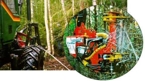 Ett sätt att röja dessa bestånd samtidigt som röjningsvirket tas tillvara som bränsle är att avverka röjningsstammarna med ett ackumulerande fälldon och flisa de avverkade träden.