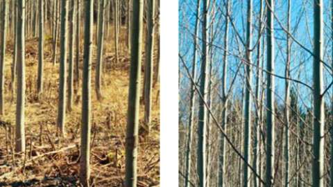 Studier av tillväxt och utveckling i hybridaspbestånd vid tre olika gallringsalternativ och vid varierande ålder har pågått under perioden 1997–2000.