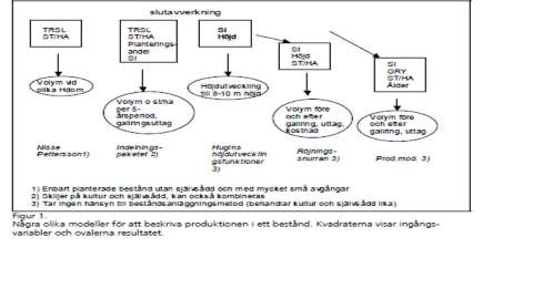 Grundkalkylen gjordes för ståndortsindex T20 i norra Sverige och T24 i södra Sverige. Föryngringsalternativen var: Naturlig föryngring av tall; Manuell och maskinell sådd av tall; Maskinell sådd av tall under tallskärm plus sådd av tall- och granfrö i blandning i södra Sverige; Glesplantering av gran under tallskärm; Plantering av tall plus plantering av gran i södra Sverige.