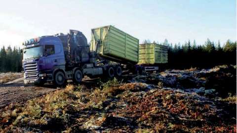 fördelade sig mellan effektiv flisningstid, rangering och transport av containrar