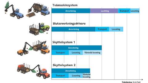 Här redovisas resultat från tester och praktisk drift för dessa direktlastningssystem. Dessutom sammanfattas för- och nackdelar samt potentialerna i direktlastningssystemen jämfört med det traditionella tvåmaskinsystemet bland annat utifrån förarnas synpunkter. En slutsats är att Skyttelsystem 1 redan har potential att konkurrera med tvåmaskinsystemet på stora delar av avverkningsarealerna men skyttelsystemen måste vidareutvecklas innan de kan nå sin fulla konkurrenskraft.