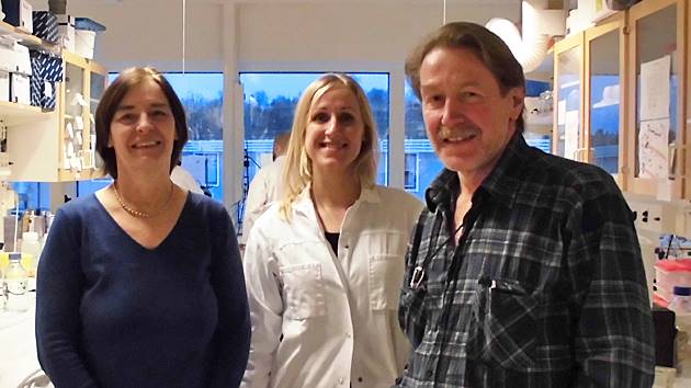 Anna Ohlsson (till vänster) och Torkel Berglund (till höger). Med på bilden är också Anna Wamstad, medarbetare i labbet på KTH. Foto Anders Lindström.