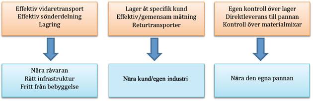 Men det finns olika syften med terminaler och därför finns det också olika strategier för deras placering. Nära råvaran, vid logistiska knutpunkter eller vid järnväg kan man kombinera effektiv sönderdelning och vidaretransport. Men även en lokalisering nära kunden kan ha sina särskilda fördelar, liksom tillgång till rätt kompetens och samarbete mellan olika aktörer.