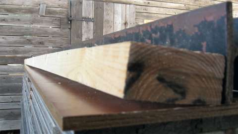 Därefter skotades stockarna ut till bilväg och låg i välta en knapp månad för att sedan transporteras till sågverket Gösta Färdigh AB i Kalvsvik. I januari 2012 sågades stockarna med postning för två centrumutbyten om 50 x 100 mm.