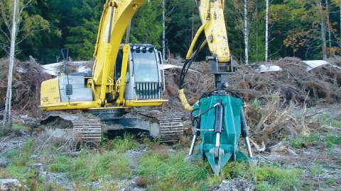 Ett nyligen framtaget aggregat som konstruerats just för att minimera såväl markpåverkan som mängden fastsittande föroreningar är TL-GROT’s stubbaggregat. Med två ”klor” och en ”tumme” som skjuter på kan man relativt enkelt