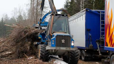 Flishuggen ska flisa, inte vänta. Flishuggen är skogsbrukets dyraste maskin och den måste användas smartare än i dag om vi ska kunna hålla nere kostnaderna för hantering av skogsbränsle. Planeringen av avlägget är central för att få ett smidigt arbetsflöde. Kanske ska vi också testa nya systemlösningar, där flishuggen inte används för att transportera flis till en omlastningsplats.