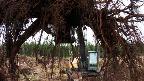 Även rotbrottsdiametern är intressant, eftersom den speglar hur mycket av marken som skadas i beståndet. Ju finare rötter som följer med stubben, desto högre blir också askhalten och näringsförlusten. Mängden kvarvarande rötter påverkar också stubbmaterialets askhalt och markens bärighet vid skotning. I SLU-studien var rotbrottsdiametern i snitt endast 5 mm. Vare sig markpåverkan eller rotbrottsdiameter påverkades av hyggets ålder.