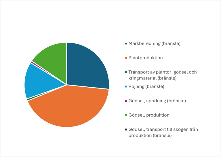 Figur 1. Fördelningen av klimatpåverkande utsläpp från skogsvårdsarbeten inom svenskt skogsbruk 2023.