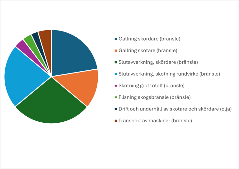 Figur 2. Fördelningen av klimatpåverkande utsläpp från drivning inom svenskt skogsbruk 2023.