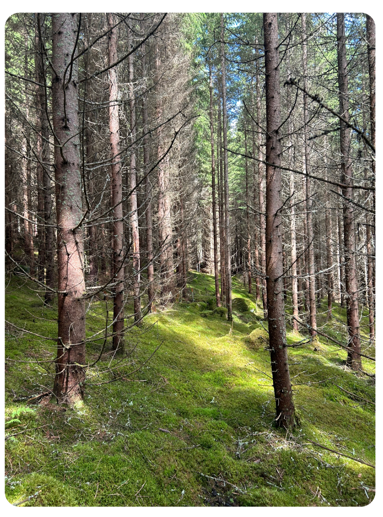 Figur 1. Studerat demonstrationsförsök till höger och ett reguljärt avkommeförsök till vänster innan gallring på sommaren 2024 (Foto: Mats Berlin)