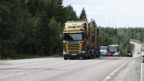 Inget pekar på att trafiksäkerheten skulle bli sämre med 74-tonnare. De har moderna, effektiva broms- och styrsystem och är lika trafiksäkra som vanliga timmerbilar. Och eftersom färre bilar klarar samma jobb – enligt våra studier kommer antalet timmerbilar på vägarna minska med nära 20 procent – så blir det lite säkrare på våra vägar.