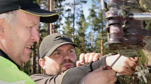 Fullt fokus på studien. Hagos Lundström följer varje rörelse som Gerhard Sjölander gör med sin Logset 12 H.