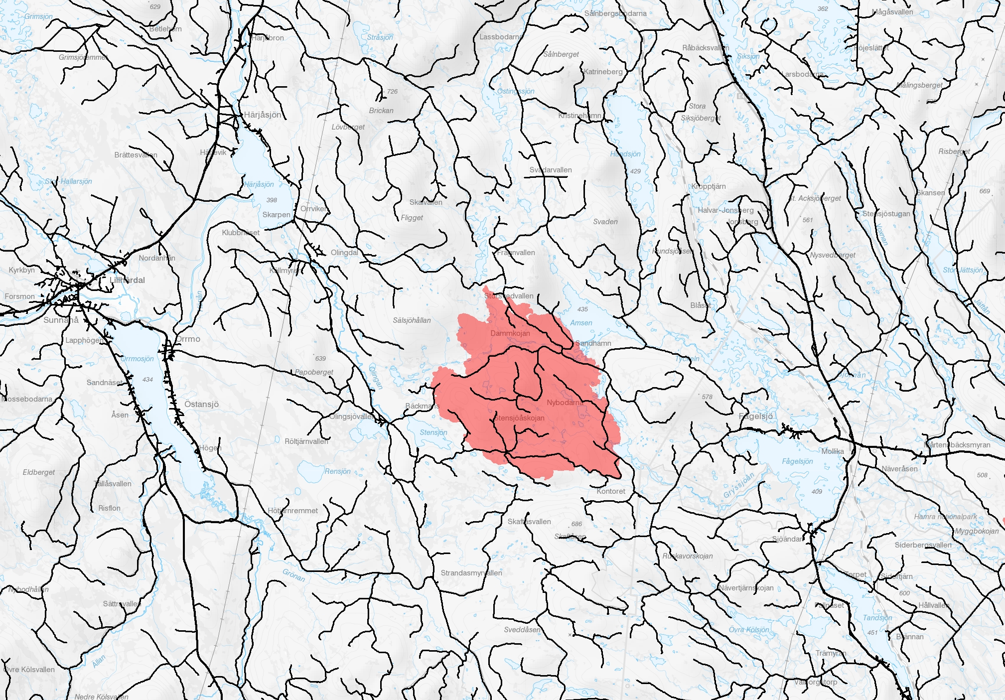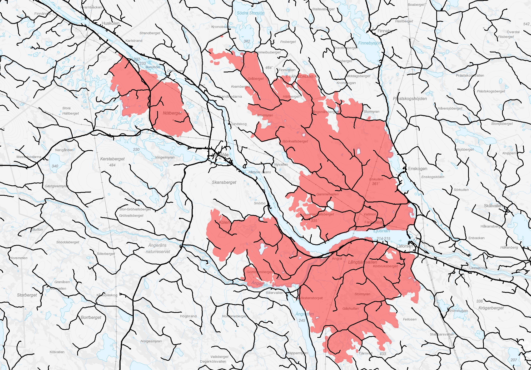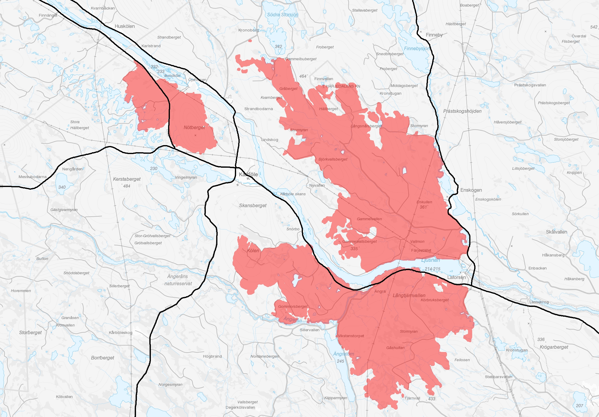 Brandområde Kårböle, allmänna vägar. Grafik: Aron Davidsson.