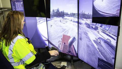 Besöket avslutades med en demonstration av Skogforsks fjärrstyrningslabb. Där pågår utveckling av förarlösa skogsmaskiner som styrs på distans, från ett kontor. Kanske det kan göra skogsnäringen mer attraktiv som arbetsplats då ensamarbete och utsatt arbetsmiljö minimeras. Inifrån labbet körs den 15 ton tunga maskinen via en joystick och VR-glasögon. ”Alla ungdomar som älskar att spela dataspel skulle inte ha några problem med att behärska den här”, sammanfattade Anna-Caren Sätherberg känslan efter att ha kört skotaren.