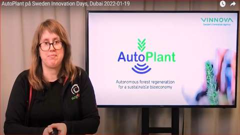 AutoPlant är ett skogsföryngringsprojekt, som leds av Skogforsk och som genomförs i samverkan mellan universitet, maskintillverkare och skogsbolag. Målet i projektet är att utveckla en autonom maskin för markberedning och plantering med bättre arbetsmiljö, högre precision och lägre miljöpåverkan jämfört med dagens system. Läs mer om AutoPlant HÄR och om bakgrunden till deltagandet på Sweden Innovation Days HÄR.