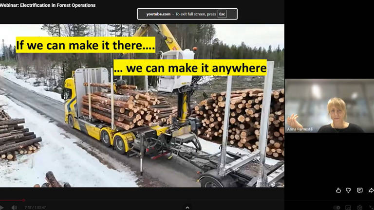In October 2025, IUFRO hosted a webinar on electrification in forestry. Anna Pernestål, Project Manager for TREE, was one of the speakers. Anna’s presentation begins approximately 4 minutes and 5 seconds into the broadcast.